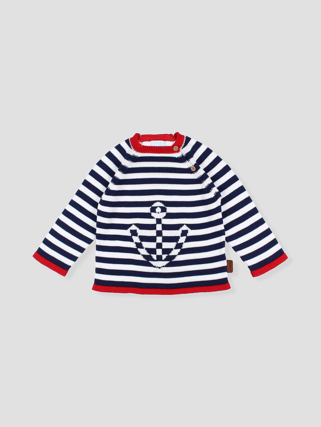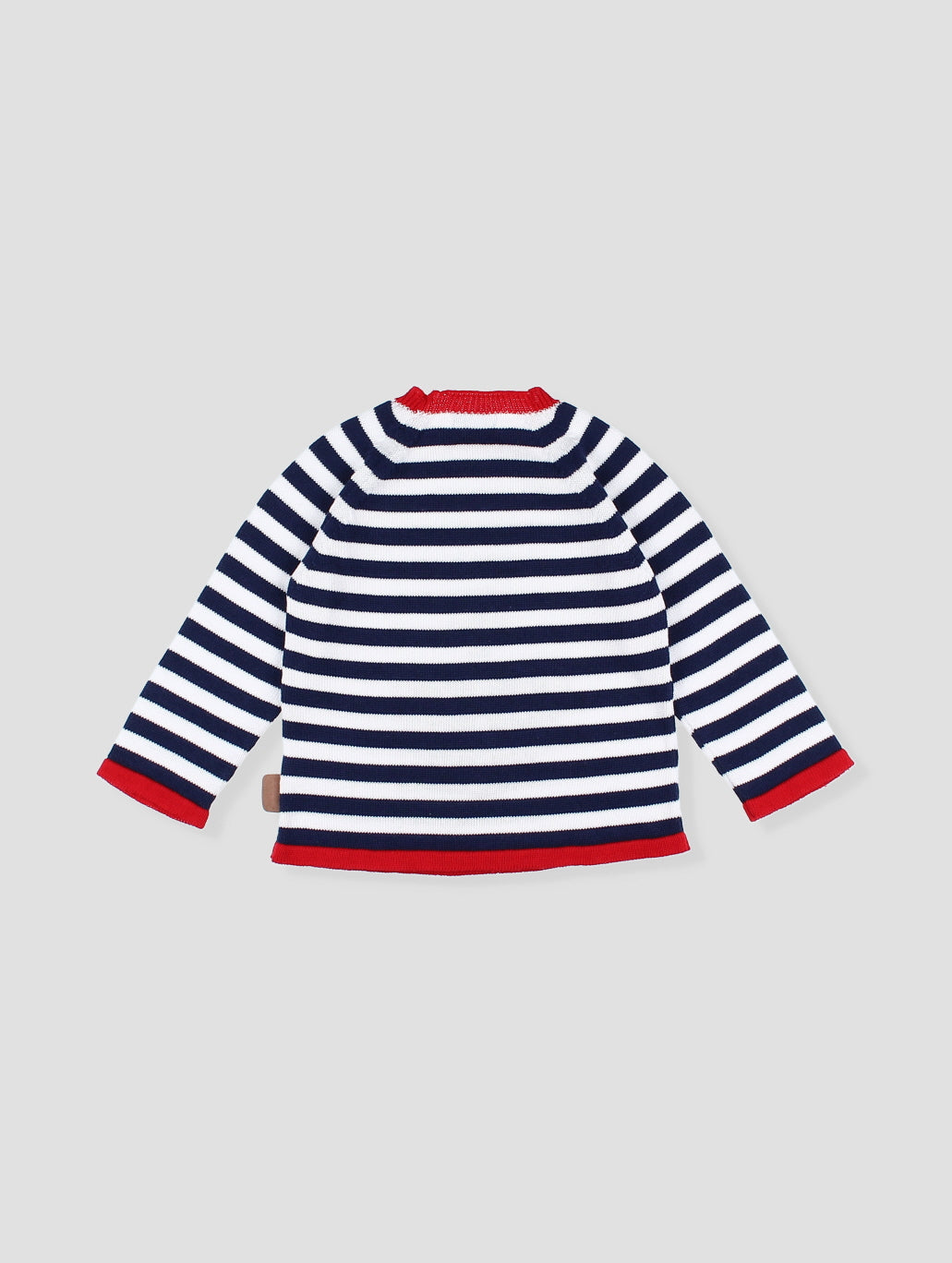 Romper de rayas rojo y blanco y con detalle de botones a tono, abotonadura delantera con detalle de bolsillo y botones para cambiar el pañal