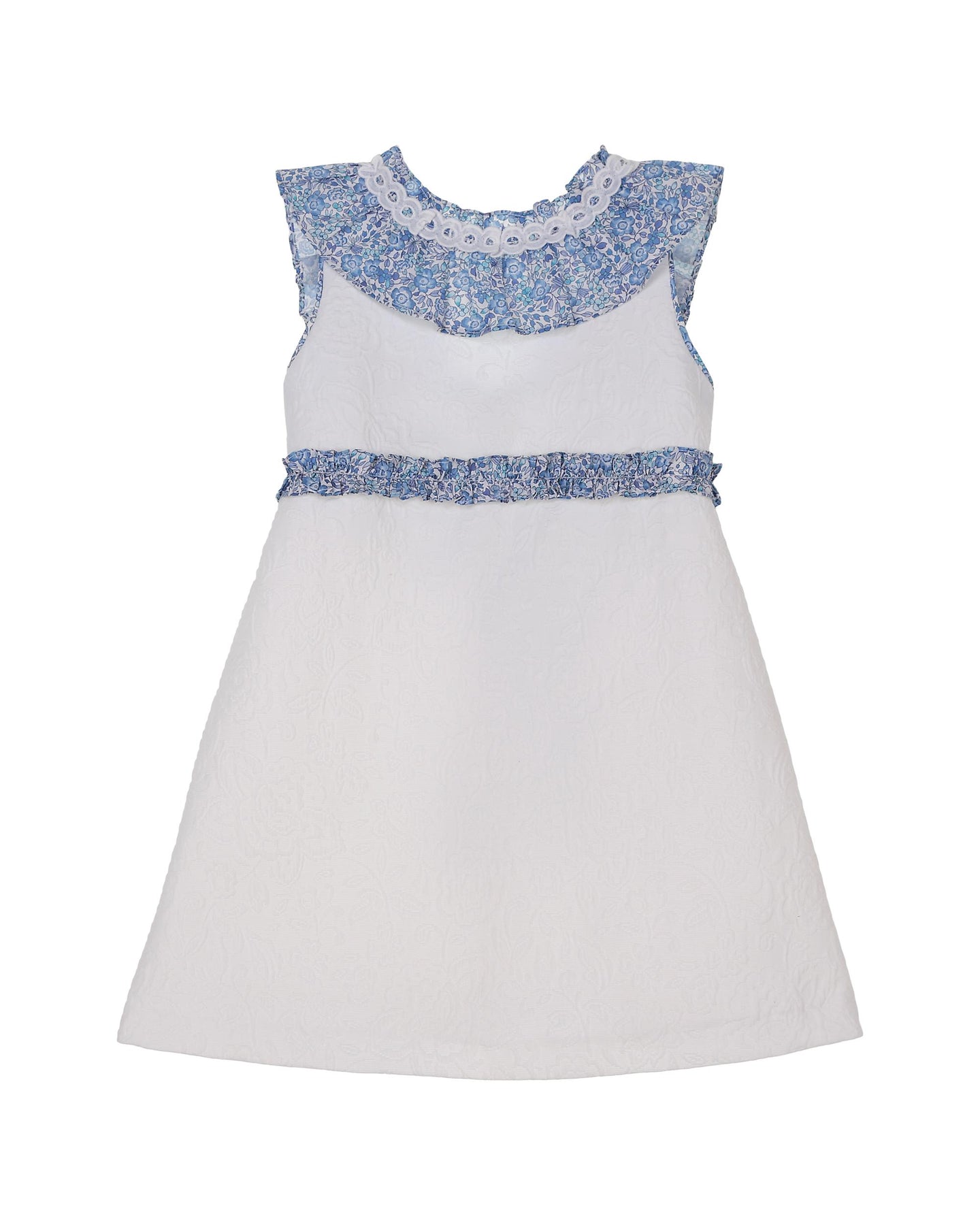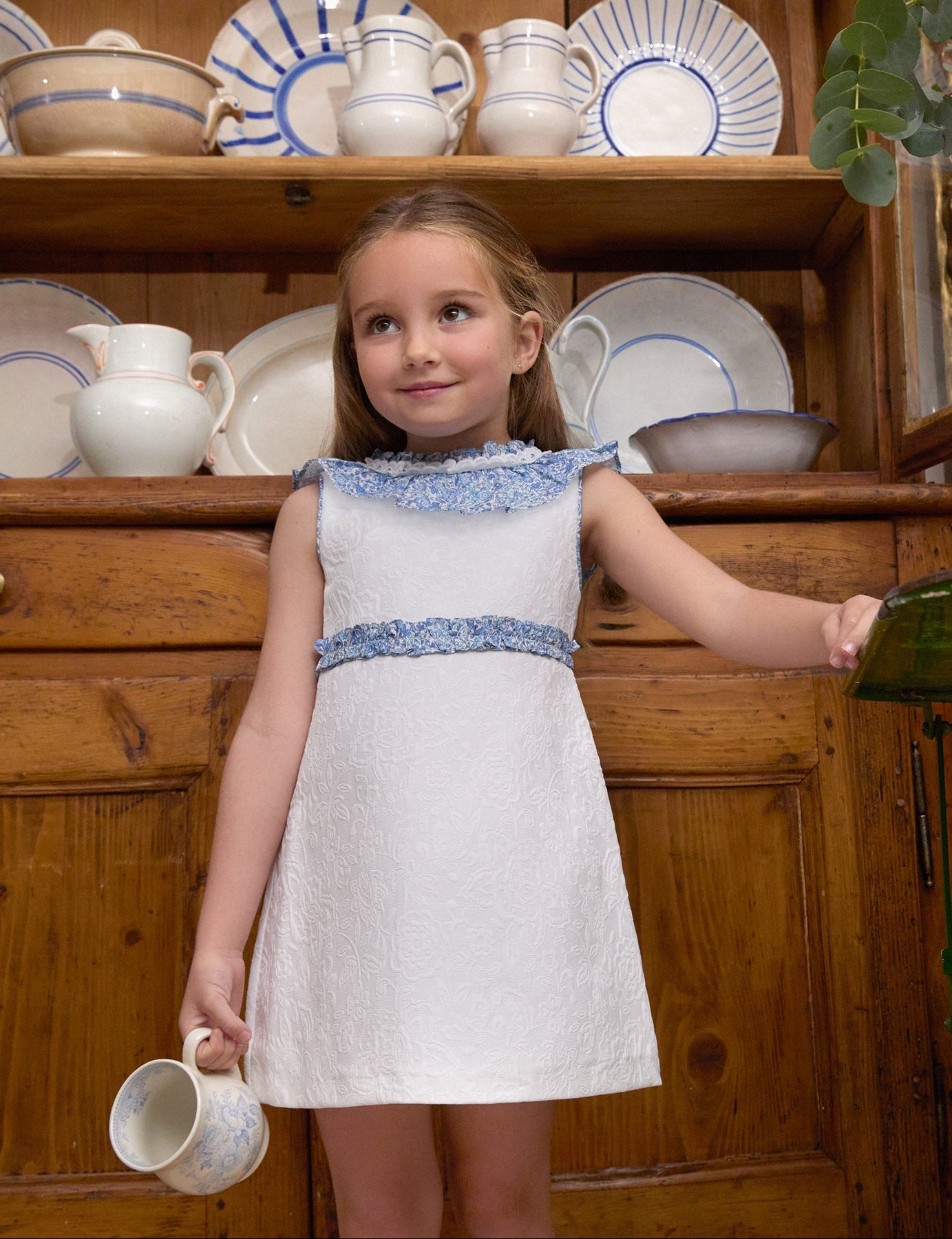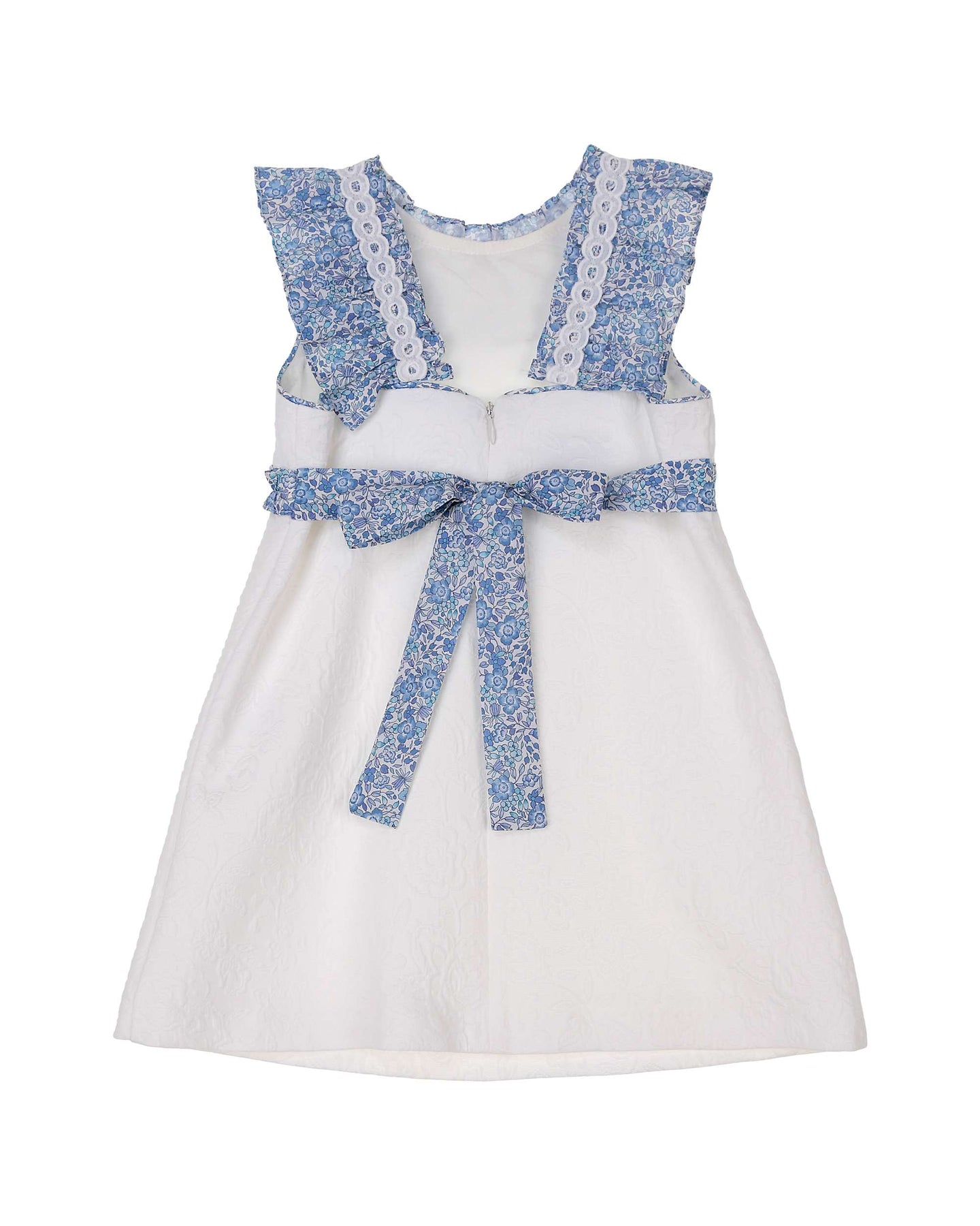 Distinguido y único, asi es nuestro vestido español Smock Corales, con un bordado punto smock en toda la pechera y hermosos ribetes a contraste en mangas y cuello. Precioso detalle de lazo en la espalda.
