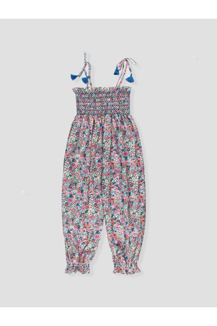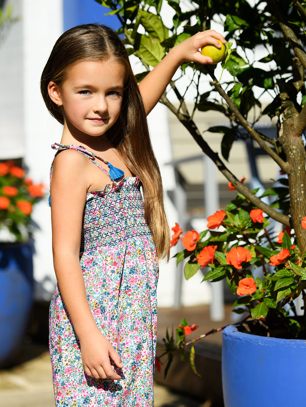 Mono largo para niña es la prenda perfecta para los días cálidos. Confeccionado en un tejido ligero y fresco, presenta un encantador estampado floral y un cuerpo smock elástico que se adapta cómodamente. Los tirantes finos ajustables, rematados con lazos y borlas decorativas, permiten un ajuste personalizado. Los bajos fruncidos con volante aportan un toque coqueto y femenino. Ideal para paseos veraniegos o escapadas a la playa, es una opción versátil y cómoda para cualquier ocasión especial.