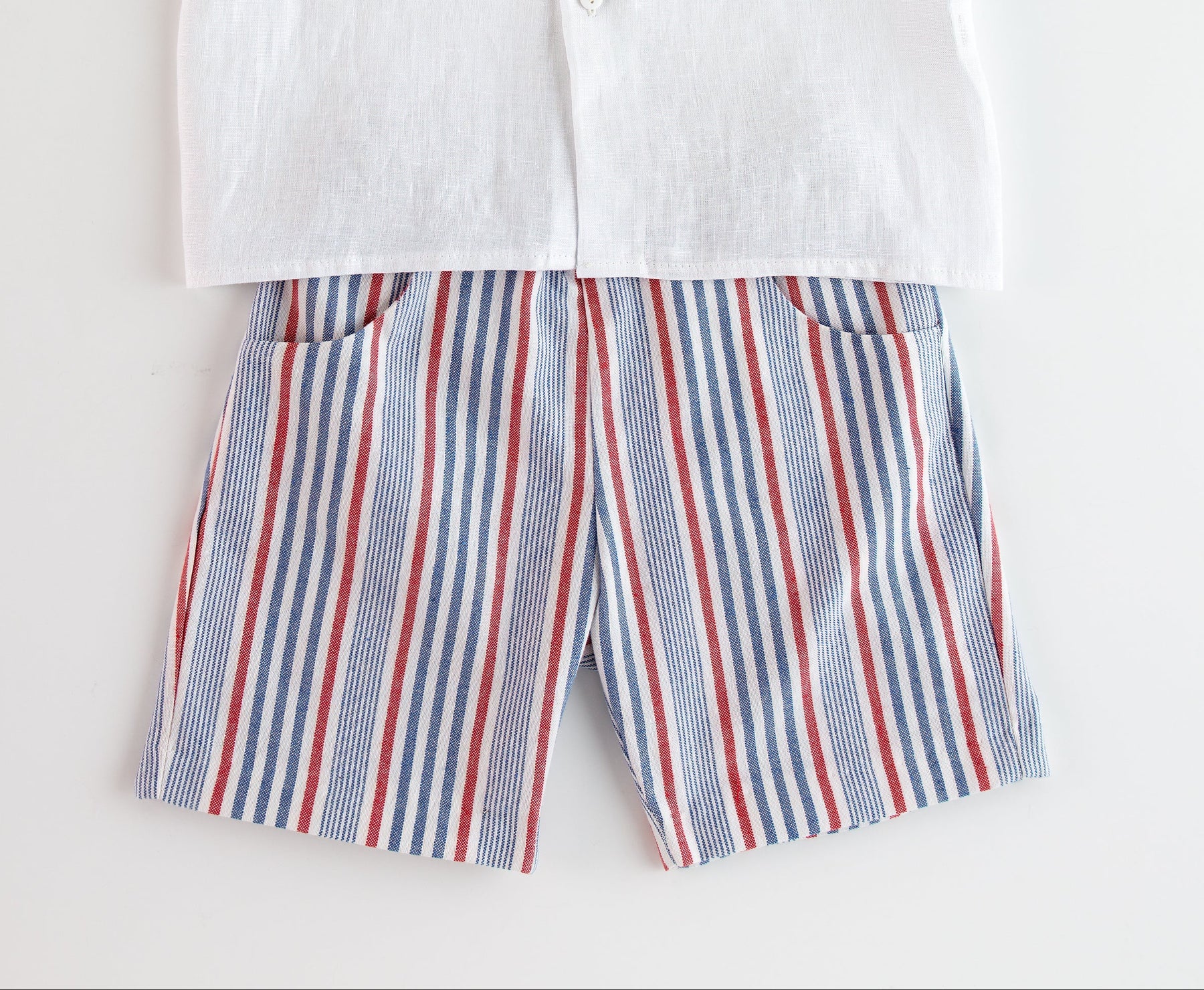 Precioso short de la tela de colección marinero de Belán. Combinan confort y elegancia en un solo producto. Mezcla de lino y algodón.